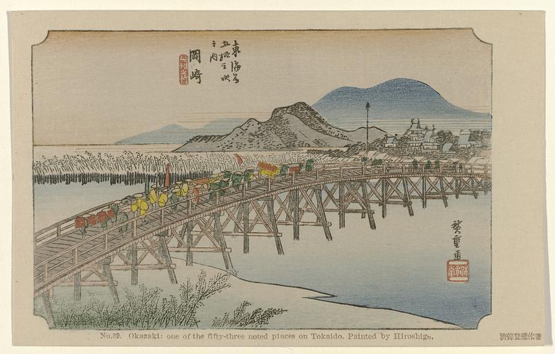 Keywords: Okazaki-Rijksmuseum RP-P-2010-310-95-39.jpeg accession number RP-P-2010-310-95-39 Utagawa died 1858; Fujisawa Bunjirô Fujisawa BunjirôHiroshige I credit line nl Een processie van een daimyo steekt de brug over de Yahagi rivier over richting Okazaki Label Line mentioned on object Hiroshige I Utagawa 1797 - 1858 1906 kleurenhoutsnede; lijnblok in zwart met kleurblokken Collection prenten; Japan collectie kaart Height mm 90 kaart Width mm 141 exhibition history cardboard object history Acquisition 2009-10-13 object type PD-US PD-old Data and photography rights All data and all images made available through the API are either in the public domain or are subject to a CC0 license https //www rijksmuseum nl/en/api/terms-and-conditions-of-use cc-zero place of creation Japan http //www rijksmuseum nl/collectie/RP-P-2010-310-95-39 http //hdl handle net/10934/RM0001 COLLECT 490341 handle Okazaki Uploaded with GWToolset Rijksmuseum RP-P-2010-310-95-39 http //www rijksmuseum nl/media/assets/RP-P-2010-310-95-39 Images uploaded by Fæ Japanese 20th-century prints in the Rijksmuseum Amsterdam Images from the Rijksmuseum |