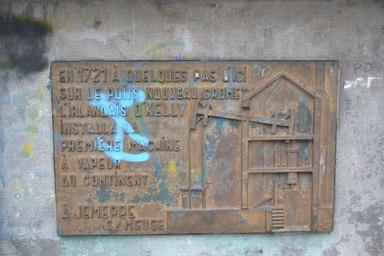 Keywords: O'Kelly Monument 01.jpg 50 37 28 N 05 31 16 E alt 0_source exif_heading Monument à la mémoire de John O'Kelly qui installa en 1721 à cet endroit à fr Jemeppe-sur-Meuse en Belgique la première machine crée par fr Thomas Newcomen du continent pour l' fr exhaure Monument in honour of John O'Kelly who built at this place in Jemeppe-sur-Meuse Belgium the first Thomas Newcomen steam machine on the Continent to pump water in coal mines Own 2012-08-14 Utilisateur Bel Adone Files by User Vberger O'Kelly Monument 2012 in Seraing |