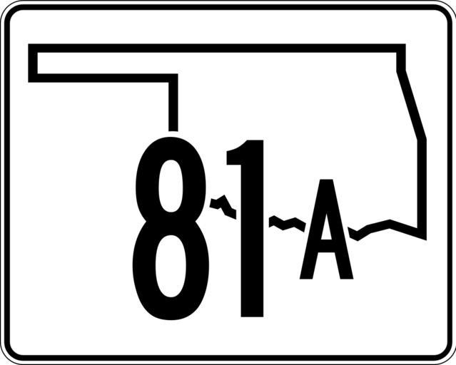 Keywords: Oklahoma State Highway 81A.svg An Oklahoma State Highway 81A shield made to the specifications of the http //www okladot state ok us/traffic/traffic99/pdfs/t035e pdf sign detail Uses the http //www triskele com/fonts/index html Roadgeek 2005 fonts United States law does not permit the copyrighting of typeface designs and the fonts are meant to be copies of a U S Government-produced work anyway The outside border has a width of 1 1/16 in and a color of black so it shows up; in reality signs have no outside border own 2013-01-16 Fredddie Oklahoma State Highway shields 0081A |