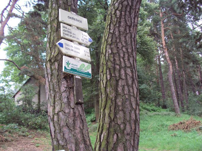Keywords: Okřešice rozcestník.jpg cs Turistický rozcestník zkraje obce Okřešice u České Lípy own Zákupák 2010-08-26 Okřešice Česká Lípa Hiking and footpath fingerposts in Česká Lípa