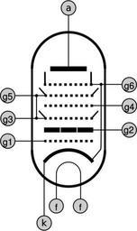 Keywords: Oktode-Symbol de.svg Symbol fuer eine Oktode a - Anode k - Kathode f - Heizung g1 - Steuergitter g2 - Hilfsanode g3 - Schirmgitter g4 - Steuergitter g5 - Schirmgitter g6 - Bremsgitter gezeichnet mit Inkscape 2007-03-23 erstellt von de User Fgli SVG vacuum tubes |