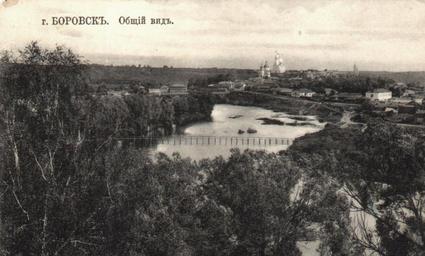 | Keywords: Old Borovsk by A.V.Muratova. View from West.jpg Бо овск Вид на за ечную часть с юга цент - слева Отк ытка 1910 или 1913 года Фотог афия А В у атовой Borovsk View of eastern suburb from the south Photo by A V Muratova printed either in 1910 or in 1913 http //borovskold ru/content php page outgallery num 2 gid 1 id 97534239 or 1910 1913 A V Muratova PD-RusEmpire ImageNote 1 332 189 142 60 1024 617 2 thumb left ачало сов улицы Энгельса ImageNoteEnd 1 ImageNote 2 618 141 42 56 1024 617 2 Т оицкая це ковь снесена ImageNoteEnd 2 ImageNote 3 659 122 35 64 1024 617 2 thumb left Пок овский собо ImageNoteEnd 3 ImageNote 4 831 137 45 63 1024 617 2 thumb left Бо исоглебская це ковь ImageNoteEnd 4 ImageNote 5 270 321 454 42 1024 617 2 Щемиловские лавы лава - в еменный летний де евянный мост ImageNoteEnd 5 ImageNote 6 704 207 247 49 1024 617 2 Земская больница ImageNoteEnd 6 Borovsk in 1910-1913 Protva River in Borovsk Zemstvo |