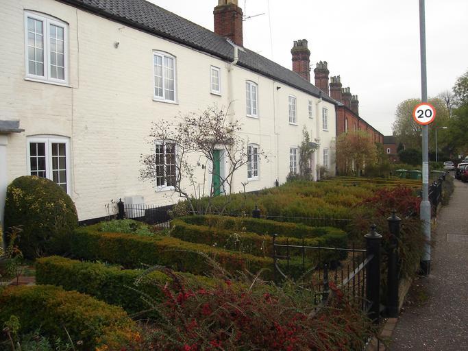 Keywords: Old Catton Cottages.JPG Old Catton Norfolk The front gardens are planted with the shrub Buxus some in a unusual Knot style own Northmetpit 2009-11-11 Old Catton Victorian houses in Norfolk England