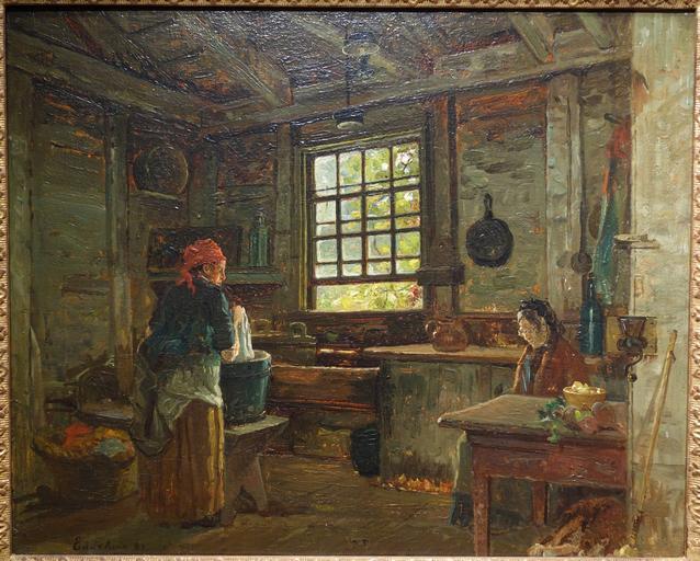 | Keywords: Old Colonial Wash Kitchen (Old Eliot House, Hyde Park, Mass.) by John Joseph Enneking, 1883, oil on panel - New Britain Museum of American Art - DSC09566.JPG en Exhibit in the New Britain Museum of American Art New Britain Connecticut USA This artwork is in the public domain because the artist died more than 70 years ago The museum permitted photographs of this exhibit without restriction 2013-06-27 12 52 13 own Daderot PD-old-70-1923 cc-zero Paintings in the New Britain Museum of American Art Uploaded with UploadWizard John Joseph Enneking |