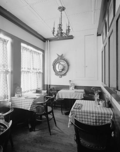 Keywords: Old Ebbitt Grill Old F Street Location second floor dining room southwest 1967.jpg en Looking southwest at the Dining Room on the second floor of the Old Ebbitt Grill located at 1427 F Street NW Washington D C United States Old Ebbitt Grill was originally a restaurant which existed as part of the Ebbitt House hotel which was established in 1856 The hotel was located on the southeast corner of F Street and 14th Street in Washington D C The original hotel was razed in 1872 and a newer much larger hotel with a greatly expanded and much more luxurious dining room built The dining room was significantly renovated in 1910 Ebbitt House closed in 1925 and the restaurant's furnishings were purchased by Anders R Lofstrand Sr a local restauranteur and veteran bar owner The Old Ebbitt Grill restaurant was moved to 1427 F Street NW Lofstrand occupied all four floors of this existing building The restaurant passed into the hands of the Clyde's Restaurant Group in 1970 after a tax auction In 1977 the building was demolished to make way for the Metropolitan Square development However Old Ebbitt Grill re-established itself on the northwest corner of Metropolitan Square at 675 15th Street NW It remains in existence as of 2012 and is the oldest bar and restaurant in the city http //www loc gov/pictures/item/dc0193/ Historic American Buildings Survey Prints and Photographs Division Library of Congress 1967 PD-USGov-Interior-HABS Old Ebbitt Grill 1926 location |
