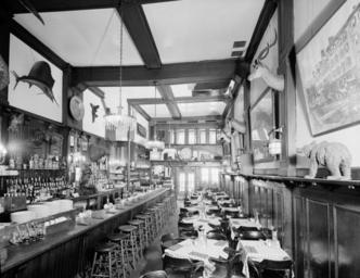 Keywords: Old Ebbitt Grill Old F Street Location first floor looking south 1967.jpg en Looking south through Barroom on the first floor of the Old Ebbitt Grill located at 1427 F Street NW Washington D C United States Old Ebbitt Grill was originally a restaurant which existed as part of the Ebbitt House hotel which was established in 1856 The hotel was located on the southeast corner of F Street and 14th Street in Washington D C The original hotel was razed in 1872 and a newer much larger hotel with a greatly expanded and much more luxurious dining room built The dining room was significantly renovated in 1910 Ebbitt House closed in 1925 and the restaurant's furnishings were purchased by Anders R Lofstrand Sr a local restauranteur and veteran bar owner The Old Ebbitt Grill restaurant was moved to 1427 F Street NW Lofstrand occupied all four floors of this existing building The restaurant passed into the hands of the Clyde's Restaurant Group in 1970 after a tax auction In 1977 the building was demolished to make way for the Metropolitan Square development However Old Ebbitt Grill re-established itself on the northwest corner of Metropolitan Square at 675 15th Street NW It remains in existence as of 2012 and is the oldest bar and restaurant in the city http //www loc gov/pictures/item/dc0193/ Historic American Buildings Survey Prints and Photographs Division Library of Congress 1967 PD-USGov-Interior-HABS Old Ebbitt Grill 1926 location |