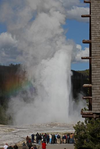 | Keywords: yellowstone national park yellowstonenationalpark yellowstone national park nationalpark upper geyser basin uppergeyserbasin outdoor cloud sky Old Faithful Geyser erupting with rainbow and visitors watching as seen from the Old Faithful Inn; Jim Peaco; June 2012; Catalog #18841d; Original #IMG_4357 Old Faithful Geyser erupting with rainbow and visitors watching as seen from the Old Faithful Inn; Jim Peaco; June 2012; Catalog #18841d; Original #IMG_4357 | ||||