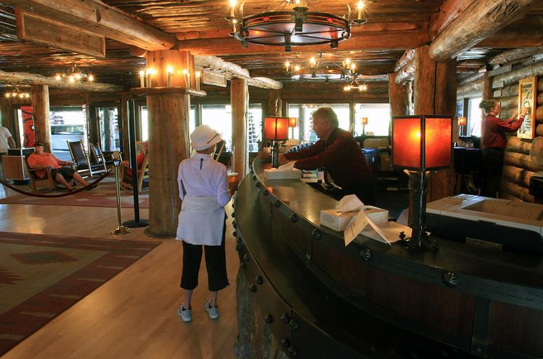 Keywords: old faithful inn oldfaithfulinn registration desk registrationdesk front desk frontdesk visitors summer yellowstone national park wyoming Old Faithful Inn registration desk; Jim Peaco; July 2013 Old Faithful Inn registration desk; Jim Peaco; July 2013 |