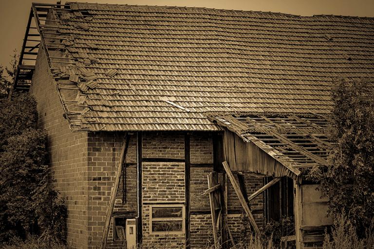 Keywords: old house barn field barn roof broken roof tile home old building farm truss fachwerkhaus leave decay agriculture historically