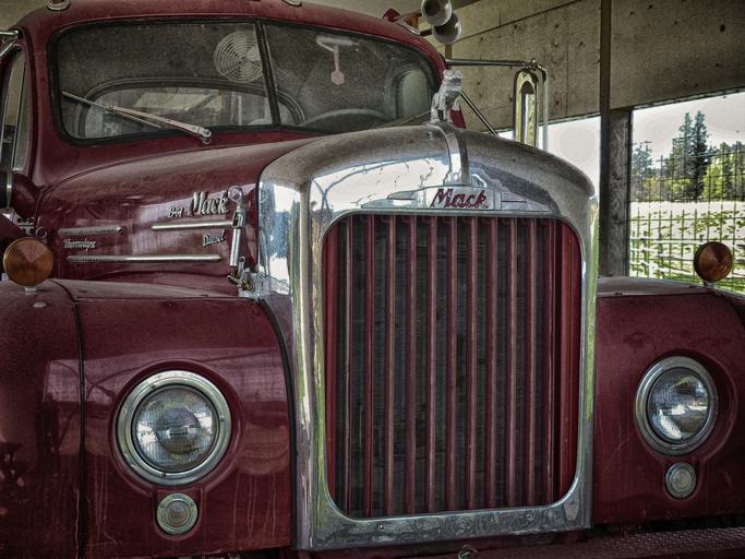 Keywords: old logging truck red transportation vehicle truck front vintage mack truck vintage automobiles history forestry
