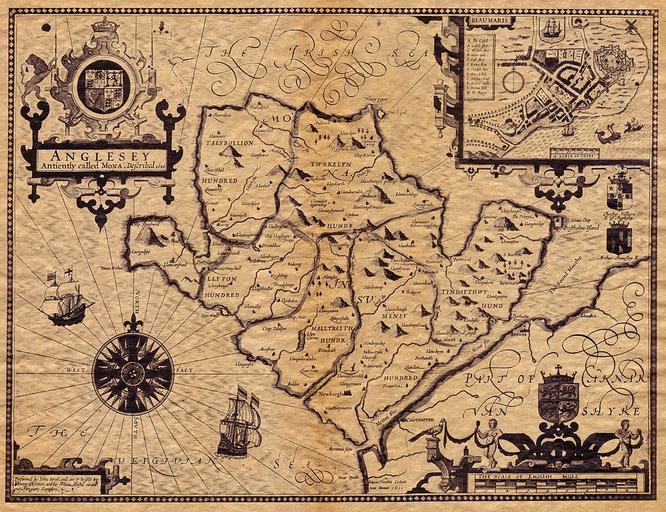| Keywords: Old Maps - Anglesey.jpg en Featuring a town plan of Beaumaris in the Menai Straits A beautifully detailed map with galleons and sea monsters 1610-04-22 23 11 52 http //www oldmap co uk/List/gallery php cid 15 The Old Map Company Creator John Speed PD-old-80 Uploaded with UploadWizard County maps of Wales by John Speed Old county maps of Anglesey |
