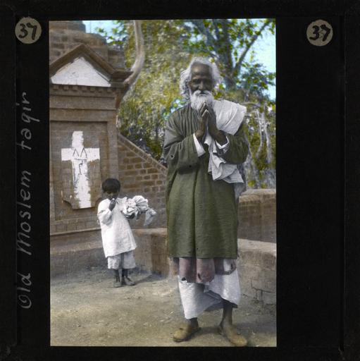 Keywords: Old Muslim Fakir and a Young Boy, Jammu, ca.1875-ca.1940 (imp-cswc-GB-237-CSWC47-LS10-037).jpg en <br> Old Muslim Fakir and a Young Boy Jammu ca 1875-ca 1940 Old Moslem faqir Photograph of an old muslim fakir standing with has hands at prayer A young boy stands behind him Faqir or fakirs were known for their austerity and teaching of Islam ; This belongs to a series of Church of Scotland Foreign Missions Committee lantern slides relating to Jammu City which is also known as the City of Temples A mission station occupied by Church of Scotland missionaries was founded here in the late 19th/early 20th century Jammu is also one of the three administrative divisions within Jammu and Kashmir the northernmost state in India Photographer Unknown Filename imp-cswc-GB-237-CSWC47-LS10-037 tif Coverage date 1875/1940 Part of collection International Mission Photography Archive ca 1860-ca 1960 Geographic subject region Jammu and Kashmir Type images Part of subcollection Photographs from the Centre for the Study of World Christianity University of Edinburgh U K ca 1900-ca 1940s Repository name Centre for the Study of World Christianity Archival file impaunpub_Volume7/1754 url Repository address The University of Edinburgh School of Divinity New College Mound Place Edinburgh EH1 2LX United Kingdom Geographic subject country India Format aacr2 1 lantern slide 8 x 8 cm Geographic subject continent Asia Rights Contact the repository for details Part of series In the Temple City of Jammu LS10 Repository email divinity-CSWC ed ac uk Subject lcsh Keyword Religious education; Muslims; Worship Date created 1875/1940 Publisher of the digital version University of Southern California Libraries Subject aat genre portraits Format aat lantern slides Legacy record ID impa-m69305 Access conditions http //www ed ac uk/schools-departments/divinity/research/centres/world-christianity/collections-resources File GB 237 CSWC47/LS10/37 1875/1940 author http //digitallibrary usc edu/cdm/ref/collection/p15799coll123/id/64871 PD-old-70-1923 Magic lantern images Images from USC Digital Library uploaded by Fæ International Mission Photography Archive ca 1860-ca 1960 |