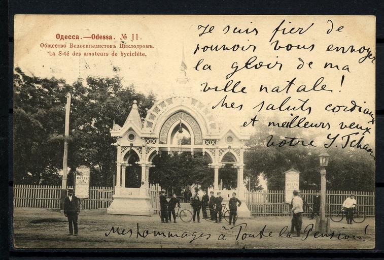 | Keywords: Old Odessa CP Obshestvo velosopedistov (zyklodrom).jpg en The society of byciclists-amaters Odessa fr Le s-tè des amateurs de byciclète Odessa ru Общество велосипедистов Циклод ом Одесса uk Това иство велосипедистів Циклод ом Одеса Postcard scan Grand Odessa serie 1902 «Phototypie Scherer Nabholz Co Moscow» Большая Одесская се ія «Фототипiя Ше е ъ абгольцъ и Ко осква» Albert Mei ей Альбе т Иванович before 1902 100px PD-RusEmpire Postcards of Odessa Phototypie Scherer Nabholz Co Grand serie French inscriptions |