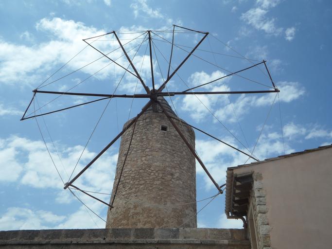 Keywords: old old mill windmill landmark mallorca historically linkage mill building wing stony wind energy sky perspective mediterranean