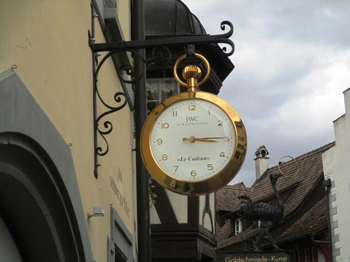 Keywords: old town blacksmithing symbol golden pocket watch goldschmieteatelier haus zum schwarzen adler arches old town core stein am rhein schaffhausen switzerland