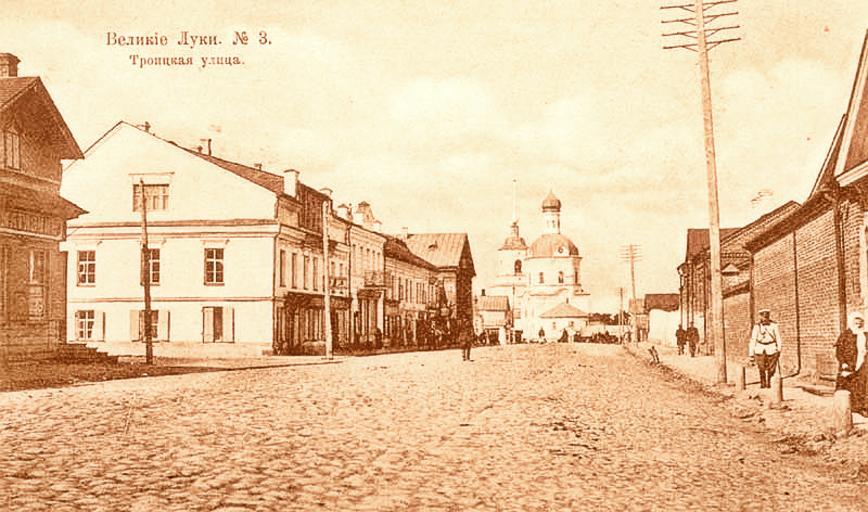| Keywords: Old velikiye luki 8.jpg ru Т оицкая улица; на углу - дом купца Шульгина в манса де кото ого асполагалось лучшее великолукское фотоателье ельника; на заднем плане - Т оицкая це ковь; сп ава - стена Вознесенского монасты я А хив Великолукского К аеведческого музея Author ачало XX в е позднее 1917 года PD-RusEmpire Velikiye Luki PD-old |