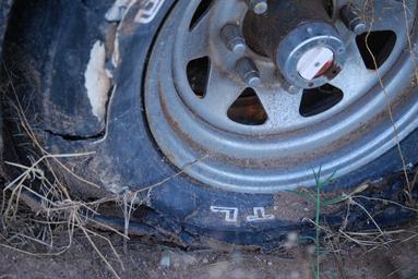 Keywords: old wheel wheels used worn disposed of broken thrown away auto tires