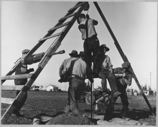 | Keywords: Olivehurst, Yuba County, California. Neighbors join in to help dig a well for family who still live . . . - NARA - 521593.jpg Scope and content Full caption reads as follows Olivehurst Yuba County California Neighbors join in to help dig a well for family who still live in their trailer General notes 521593 Local identifier 83-G-41352 Department of Agriculture Bureau of Agricultural Economics Division of Economic Information ca 1922 - ca 1953 NARA-Author Lange Dorothea 1895-1965 Photographer 1372774 <br /> Still Picture Records Section Special Media Archives Services Division NWCS-S National Archives at College Park 8601 Adelphi Road College Park MD 20740-6001 1940-02-21 Record group Record Group 83 Records of the Bureau of Agricultural Economics 1876 - 1959 Record group ARC 412 Photographic Prints Documenting Programs and Activities of the Bureau of Agricultural Economics and Predecessor Agencies compiled ca 1922 - ca 1947 documenting the period ca 1911 - ca 1947 Series ARC 521048 File unit File unit ARC Variant control numbers NAIL Control Number NWDNS-83-G-41352 Other versions <gallery> File Olivehurst _Yuba_County _California _Neighbors_join_in_to_help_dig_a_well_for_family_who_still_live_ _ _ _-_NARA_-_521593 tif tif File Olivehurst _Yuba_County _California _Neighbors_join_in_to_help_dig_a_well_for_family_who_still_live_ _ _ _-_NARA_-_521593 jpg jpg </gallery> NARA-cooperation PD-USGov Dorothea Lange History of Yuba County California |