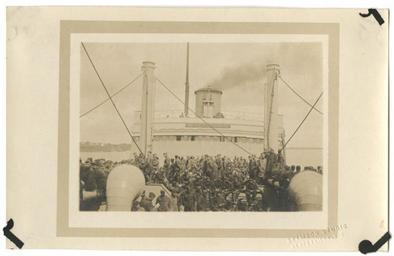 Keywords: armistice day armisticeday library of virginia libraryofvirginia world war i worldwari military hospitals militaryhospitals u.s. army usarmy toul, france toulfrance on the boat ontheboat coming home cominghome benjamin alston stimson benjaminalstonstimson 1918 1919 uss walter a. luckenbach usswalteraluckenbach medic soldier great war greatwar transport ship steam ship steamship luckenbach steamship company luckenbachsteamshipcompany seattle construction and dry dock company seattleconstructionanddrydockcompany id-3171 id3171 smoke stimson studio stimsonstudio steam ships steamships base hospital #45 basehospital45 u.s. army base hospital no. 45 usarmybasehospitalno45 steamer cargo ship cargoship ss walter a. luckenbach sswalteraluckenbach walter a. luckenbach walteraluckenbach luckenbach seattle contruction and drydock company seattlecontructionanddrydockcompany seattle dry dock & shipbuilding company seattledrydockshipbuildingcompany united states navy unitedstatesnavy us navy usnavy usn uss walter a. luckenbach (id-3171) usswalteraluckenbachid3171 troopship troop transport trooptransport new orleans coal and bisso towboat company neworleanscoalandbissotowboatcompany ss a.l. bisso ssalbisso a.l. bisso albisso ss mardin ssmardin mardin marsa ithalat-ithracat marsaithalatithracat Title: On the boat, coming home Creator: Stimson, Benjamin Alston Date: 1918 Notes: Part of an album containing 134 photographs and 47 postcards relating to U.S. Army Base Hospital No. 45 (Medical College of Virginia unit), Toul, France, in World War I. Call No: P & P C1:81 Rights Info: No known restrictions on publication. Repository: Library of Virginia, Special Collections, Prints and Photographs, 800 E. Broad St., Richmond, VA, 23219, USA. Contact: 804-692-3703. Title: On the boat, coming home Creator: Stimson, Benjamin Alston Date: 1918 Notes: Part of an album containing 134 photographs and 47 postcards relating to U.S. Army Base Hospital No. 45 (Medical College of Virginia unit), Toul, France, in World War I. Call No: P & P C1:81 Rights Info: No known restrictions on publication. Repository: Library of Virginia, Special Collections, Prints and Photographs, 800 E. Broad St., Richmond, VA, 23219, USA. Contact: 804-692-3703. |