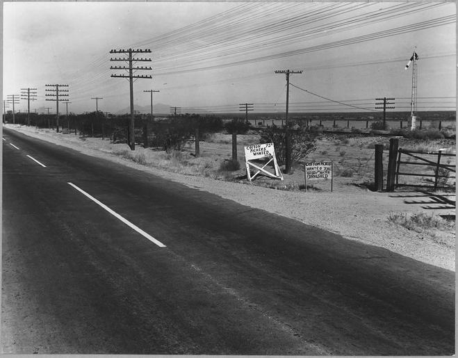 | Keywords: On Highway 80, Maricopa County, Ariz. Ranch advertisement during cotton harvest. Highway signs read . . . - NARA - 522217.tif Scope and content Full caption reads as follows On Highway 80 Maricopa County Ariz Ranch advertisement during cotton harvest Highway signs reading cotton pickers wanted are but the last stage in the process of attracting seasonal laborers to Arizona from areas as remote as Yakima Valley Washington and the bootheel of Missouri General notes 522217 Local identifier 83-G-44048 Department of Agriculture Bureau of Agricultural Economics Division of Economic Information ca 1922 - ca 1953 NARA-Author Lange Dorothea 1895-1965 Photographer 1372774 <br /> Still Picture Records Section Special Media Archives Services Division NWCS-S National Archives at College Park 8601 Adelphi Road College Park MD 20740-6001 11/1940 Record group Record Group 83 Records of the Bureau of Agricultural Economics 1876 - 1959 Record group ARC 412 Photographic Prints Documenting Programs and Activities of the Bureau of Agricultural Economics and Predecessor Agencies compiled ca 1922 - ca 1947 documenting the period ca 1911 - ca 1947 Series ARC 521048 File unit File unit ARC Variant control numbers NAIL Control Number NWDNS-83-G-44048 yes Other versions <gallery> File On_Highway_80 _Maricopa_County _Ariz _Ranch_advertisement_during_cotton_harvest _Highway_signs_read_ _ _ _-_NARA_-_522217 tif tif File On_Highway_80 _Maricopa_County _Ariz _Ranch_advertisement_during_cotton_harvest _Highway_signs_read_ _ _ _-_NARA_-_522217 jpg jpg </gallery> NARA-cooperation PD-USGov Dorothea Lange Maricopa County Arizona NARA TIF images with categorized JPGs |