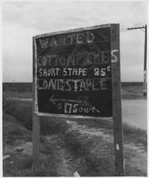 | Keywords: On Highway 84, Pinal County, Arizona. Ranch advertisement during cotton harvest. Highway signs readi . . . - NARA - 522491.tif Scope and content Full caption reads as follows On Highway 84 Pinal County Arizona Ranch advertisement during cotton harvest Highway signs reading cotton pickers wanted' are but the last stage in the process of attracting seasonal laborers to Arizona from areas as remote as Yakima Valley Washington and the bootheel of Missouri General notes 522491 Local identifier 83-G-44322 Department of Agriculture Bureau of Agricultural Economics Division of Economic Information ca 1922 - ca 1953 NARA-Author Lange Dorothea 1895-1965 Photographer 1372774 <br /> Still Picture Records Section Special Media Archives Services Division NWCS-S National Archives at College Park 8601 Adelphi Road College Park MD 20740-6001 11/1940 Record group Record Group 83 Records of the Bureau of Agricultural Economics 1876 - 1959 Record group ARC 412 Photographic Prints Documenting Programs and Activities of the Bureau of Agricultural Economics and Predecessor Agencies compiled ca 1922 - ca 1947 documenting the period ca 1911 - ca 1947 Series ARC 521048 File unit File unit ARC Variant control numbers NAIL Control Number NWDNS-83-G-44322 yes Other versions <gallery> File On_Highway_84 _Pinal_County _Arizona _Ranch_advertisement_during_cotton_harvest _Highway_signs_readi_ _ _ _-_NARA_-_522491 tif tif File On_Highway_84 _Pinal_County _Arizona _Ranch_advertisement_during_cotton_harvest _Highway_signs_readi_ _ _ _-_NARA_-_522491 jpg jpg </gallery> NARA-cooperation PD-USGov Dorothea Lange Pinal County Arizona NARA TIF images with categorized JPGs |