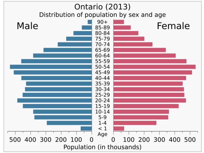 | Keywords: Ontario population pyramid.svg translate yes en 2013 Ontario Canada population pyramid Data from http //www bcstats gov bc ca/StatisticsBySubject/Demography/PopulationEstimates aspx 2014-08-11 own Delphi234 cc-zero Population pyramids of Canada Uploaded with UploadWizard |