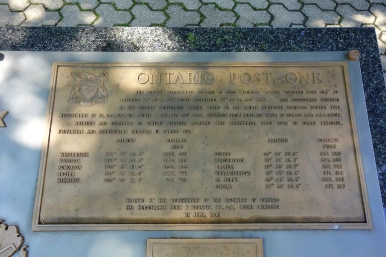 Keywords: Ontario Post One map and plaque - Queen's Park, Toronto, Ontario, Canada - DSC01501.JPG en Ontario Post One - Queen's Park Toronto Ontario Canada This geodetic station forms the base point for the Ontario coordinate system 2013-07-04 15 58 25 own Daderot cc-zero Ontario Post One Uploaded with UploadWizard |
