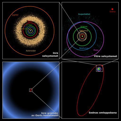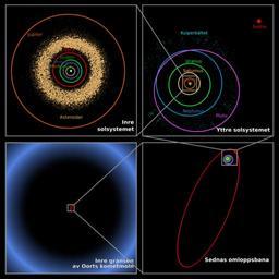 Keywords: Oort cloud Sedna orbit sv.svg Swedish translation of File Oort cloud Sedna orbit svg Dessa fyra rutor visar positionen för det transneptunska objektet 90377 Sedna vilken befinner sig i utkanten av solsystemet Varje ruta zoomar successivt ut for att ge ett sammanhang http //commons wikimedia org/wiki/File Oort_cloud_Sedna_orbit svg Image courtesy of NASA / JPL-Caltech / R Hurt Original text courtesy of NASA / JPL-Caltech SVG conversion by Holek Translation to Swedish by Njaelkies Lea <span class signature-talk >talk</span> PD-USGov-NASA Oort cloud Sedna |