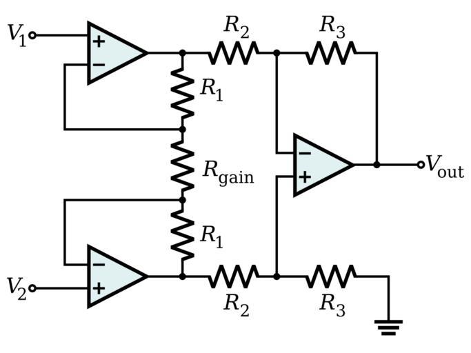 Keywords: Op-Amp Instrumentation Amplifier.svg A circuit diagram of a instrumentation amplifier made using operational amplifiers Combines very high input impedance high common-mode rejection low DC offset and other properties used in making very accurate low-noise measurements own 2009-01-26 Inductiveload Own work all rights released Public domain 150px Instrumentation amplifiers |