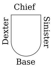 Keywords: Opdeling1.svg en Heraldic terminology Dexter left portion of shield; Sinister right portion of shield; Chief upper area of sheild; Base lower area of shield Skjoldets opdelingsbenævnelser own User Rama Heraldic shields Illustrations of heraldic terms SVG diagrams in English Spanish heraldic shields |