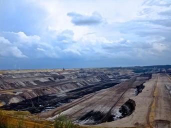 Keywords: open pit mining garzweiler brown coal rain clouds sky earth removal depletion