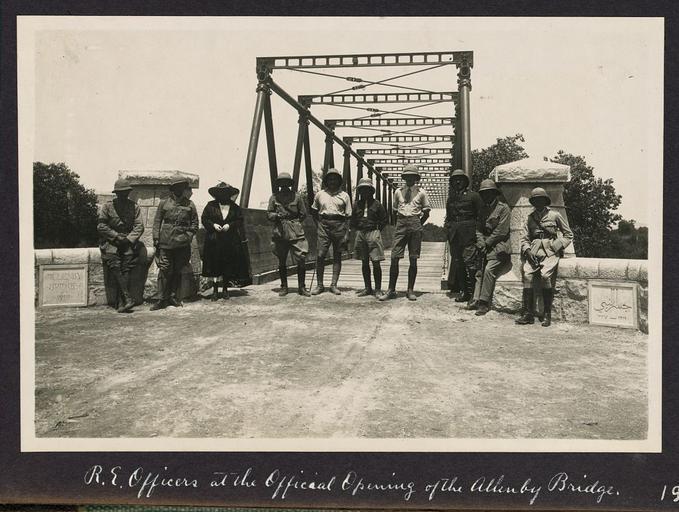 Keywords: Opening of the Allenby Bridge (1918).jpg R E Officers at the official opening of the Allenby Bridge 1918 http //memory loc gov/phpdata/pageturner php type contactminor cmIMG1 /pnp/ppmsca/13200/13291/00069t gif agg ppmsca item 13291 caption 69 1918 author PD-USGov original upload log All user names refer to Commons 14 44 October 26 2007 Golf Bravo 1 024×772 161 205 bytes Image 00069v jpg - <nowiki> R E Officers at the official opening of the Allenby Bridge 1918</nowiki> Allenby Bridge British Mandate of Palestine |