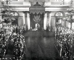 | Keywords: Opening of Duma.jpg ru То жественное отк ытие Госуда ственной думы и Госуда ственного совета Зимний дво ец 27 ап еля 1906 en Tsar Nicholas II's opening speech before the two chambers of the State Duma in the Winter Palace de Russland St Petersburg Eröffnungsfeier der russischen Parlamente Zar Nikolaus II verliest die Thronrede http //tarix info/xronologiya/420-tarixd601-11-dekabr html http //tarix info/uploads/posts/2011-12/1323601632_qosduma jpg direct link Julian 1906-05-10 1906-04-27 К Е фон Ганн <gallery>File Bundesarchiv Bild 183-H28740 St Petersburg Eröffnung der Parlamente jpg File Empress Alexandra Feodorovna dowager empress Maria Feodorovna and grand duchesses Olga and Xenia Alexandrovna at the opening of the Duma jpg</gallery> PD-RusEmpire original upload log page ru wikipedia Opening_of_Duma jpg 2007-09-20 15 43 Vovanik 640×519× 70071 bytes Изоб ажение Описание То жественное отк ытие Госуда ственной Думы и Госуда ственного Совета Зимний дво ец 27 ап еля 1906 Авто State Duma of the Russian Empire of the first convocation St George's Hall Hermitage Museum 1906 in Saint Petersburg Nicholas II of Russia in 1906 in photographs |