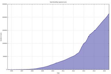 Keywords: OpenStreetMap registered users 2015 en.svg OpenStreetMap registered users en svg 2016-05-21 own Kocio other versions Created with Gnuplot Source code <source lang gnuplot > /usr/bin/gnuplot set timefmt d/ m/ Y set datafile separator unset key set style data lines set style fill transparent solid 0 4 set grid set xdata time set xlabel 'Date' set xrange '12/08/2005' '15/06/2015' set format x ' Y' set ylabel 'Number of users' set format y ' 0f' set term svg size 1200 800 font Arial 10 set title OpenStreetMap registered users set output 'OpenStreetMap registered users 2015 en svg' plot 'OSMSTATS_ALL_EXTRACTED csv' every 1 using 1 2 with filledcurves below x1 lt rgb 'dark-blue' lw 2 </source> cc-zero OpenStreetMap plots |