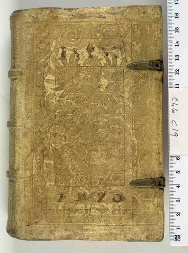 Keywords: Opera Q. Horatii Flacci ... - Upper cover (c46c19).jpg Style Panel design Dated; Caption Upper cover; Colour White / cream; Edge Unspecified exhibition history Decorative Technique Panel stamp in blind; Cover Material Pigskin alum tawed 2 pairs of clasps 1570 Germany Macchi states; Panel stamp dimension shows it was also used on larger formats object history Text 1568; Leipzig; Unspecified object type Cc-zero place of creation Binding Germany place of discovery Unspecified British Library image http //www bl uk/catalogues/bookbindings/LargeImage aspx RecordId 020-000007438 ImageId ImageId 43324 Copyright BL Opera Q Horatii Flacci Uploaded with GWToolset Opera Q Horatii Flacci - Upper cover c46c19 http //www webarchive org uk/bldatasets/bindings/7851_4 jpg Bookbinding 16th-century bookbinding British Library Bookbindings |