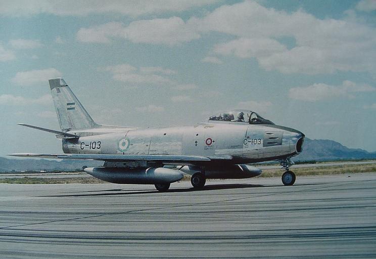 Keywords: Operacion Sabre.jpg es OPERACIÓN SABRE El 26 de septiembre de 1960 arriban a la IV Brigada Aérea Mendoza el primer grupo de cazabombarderos North American F-86F-30 NA Sabre El vuelo ferry liderado por el comodoro Jorge Miguel Martínez Zuviría comenzó el 6 de setiembre desde la AFB Williams Arizona El segundo grupo llega el 10 de diciembre Con la recepción de todo el material se reactiva el Grupo 1 de Caza Bombardeo La incorporación del Sabre marca un punto de inflexión en las unidades de caza de 26 de Septiembre 1960 Dirección de Estudios Históricos de la Fuerza Aérea Argentina Dirección de Estudios Históricos de la Fuerza Aérea Argentina other versions Custom license marker 2015 09 26 PD-AR-Photo Uploaded with UploadWizard North American F-86 Sabre Air force of Argentina |