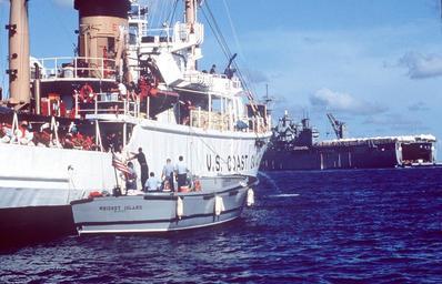 Keywords: OPERATION ABLE VIGIL DVIDS1080581.jpg en Guantanamo Bay Cuba Sept 19 --A Navy patrol boat the Whidbey Island moors alongside a Coast Guard cutter before the cutter gets underway assisting in Operation Able Vigil between Cuba and the Florida Keys Operation Able Vigil got underway in mid-August when the number of Cuban rafters rescued in the Florida straits skyrocketed above the month of June's record of 1 173 to 2 607 in a single week of August USCG photo by PA1 Don Wagner 1994-09-19 https //www dvidshub net/image/1080581 1080581 2013-12-11 18 56 GUANTANAMO BAY CU PD-USGov Guantanamo Bay Images from DoD uploaded by Fæ |