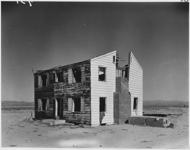 Keywords: (Operation Cue) - Two-story wood frame house at 5,500 feet after the blast - NARA - 541788.tif Scope and content General notes 541788 Local identifier 304-OC-737 Federal Civil Defense Administration Operations Group 1951 - 1958 Still Picture Records Section Special Media Archives Services Division NWCS-S National Archives at College Park 8601 Adelphi Road College Park MD 20740-6001 1955-05-05 Record group Record Group 304 Records of the Office of Civil and Defense Mobilization 1947 - 1962 Record group ARC 620 Photographs of Operation Cue compiled 05/05/1955 - 05/05/1955 Series ARC 541784 File unit File unit ARC Variant control numbers NAIL Control Number NWDNS-304-OC-737 yes Other versions <gallery>File Operation_Cue _-_Two-story_wood_frame_house_at_5 500_feet_ from_blast_site _-_NARA_-_541785 tif</gallery> NARA-cooperation PD-USGov Operation Cue |