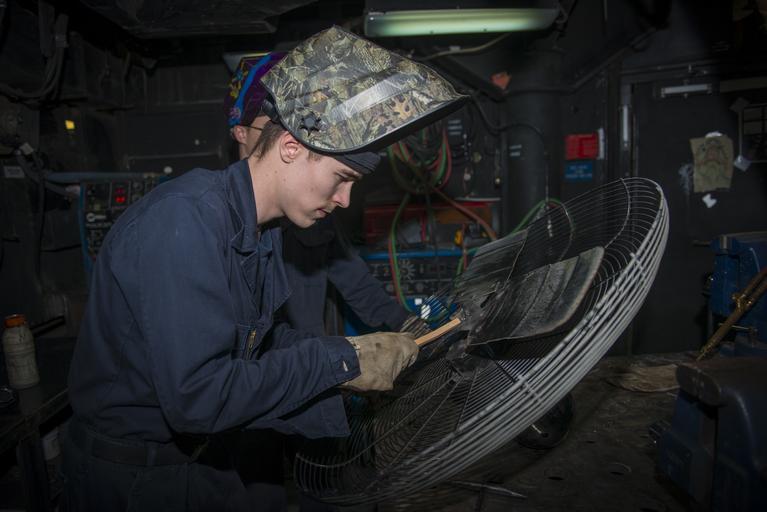 Keywords: Operation Inherent Resolve 150220-N-HD510-029.jpg en 150220-N-HD510-029 ARABIAN GULF Hull Maintenance Technician Fireman Tyler Fath prepares a fan for welding aboard the aircraft carrier USS Carl Vinson Carl Vinson is deployed in the U S 5th Fleet area of operations supporting Operation Inherent Resolve strike operations in Iraq and Syria as directed maritime security operations and theater security cooperation efforts in the region 2015-02-20 Feb 20 2015 https //www dvidshub net/image/1791279 150220-N-HD510-029 2015-02-27 20 03 USS CARL VINSON ARABIAN GULF AT SEA PD-USGov-Military-Navy USS Carl Vinson CVN-70 Images from DoD uploaded by Fæ |