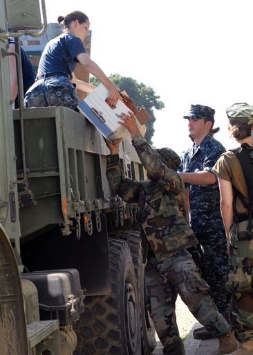 | Keywords: Operation Unified Response DVIDS250780.jpg en Sailors assigned to the amphibious dock landing ship USS Fort McHenry unload hundreds of jars of peanut butter for distribution to Haitians in Birey Haiti Fort McHenry is conducting humanitarian and disaster relief operations as part of Operation Unified Response after a 7 0 magnitude earthquake caused severe damage in and around Port-au-Prince Haiti Jan 12 2010-02-10 Photo by Petty Officer1st Class Rachael L Leslie https //www dvidshub net/image/250780 100210-N-+++++-018 2010-02-13 01 40 BIREY HT PD-USGov-Military-Navy Operation Unified Response Images from DoD uploaded by Fæ |