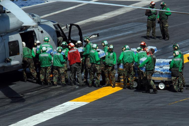 | Keywords: Operations aboard USS Ronald Reagan DVIDS98118.jpg en 080625-N-4005H-054 PACIFIC OCEAN June 25 2008 Sailors load cases of water bound for the Philippines onto an HH-60H helicopter assigned to the Black Knights of Helicopter Anti-Submarine Squadron HS 4 on the flight deck of the Nimitz-class aircraft carrier USS Ronald Reagan CVN 76 Ronald Reagan sent 12 000 bottles of water and 7 500 pounds of Rice to the Philippines supporting disaster relief efforts The Ronald Reagan Carrier Strike Group is support the government of the Republic of the Philippines to help provide humanitarian assistance and disaster relief to the victims of Typhoon Fengshen U S Navy photo by Mass Communication Specialist 3rd Class Aaron Holt Released 2008-06-25 Aaron Holt https //www dvidshub net/image/98118 080625-N-+++++-054 2008-06-28 14 09 USPACOM AT SEA PD-USGov-Military-Navy USS Ronald Reagan CVN-76 Images from DoD uploaded by Fæ |
