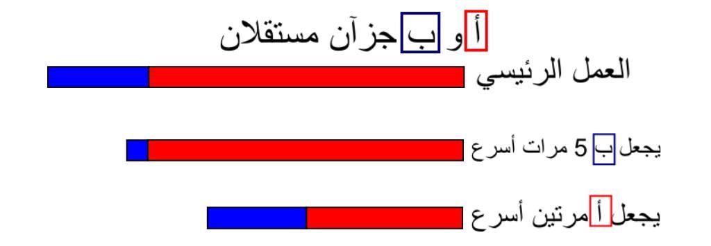 Keywords: Optimizing-different-part-ar.svg en See Image Optimizing-different-parts svg ar بفترض أن مهمة من جزأين مستقلين أ و ب، ب يأخذ ما يقارب من 25٪ من الوقت الكامل للحساب مع الجهد، قد يكون المبرمج قادرا على جعل هذا الجزء خمس مرات أسرع ، ولكن هذا يقلل من الوقت الكامل للحساب إلا قليلا بالمقابل ، قد لا يحتاج المرء لأداء لجهد كبير لجعل الجزء أ أسرع مرتين وهذا سيجعل الحساب أسرع بكثير من أي استفادة مثلى للجزء ب، حتى ولو حصلت على أكبر تسريع للجزء ب 5 مرات مقابل 2 Image Optimizing-different-parts svg وهراني from the original by user Gorivero 2010-12-04 <gallery> File Optimizing-different-parts svg English </gallery> Inkscape Amdahl's law |