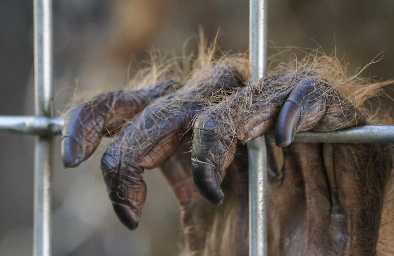Keywords: orang utan ape primate tree climbers old world monkey mammal long hair hand grid clamp