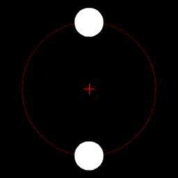 Keywords: Orbit1.gif Two bodies of similar mass orbiting around a common barycenter red cross with circular orbits Dwa ciała o jednakowych masach krążące wokół wspólnego barycentrum Own User Zhatt Zhatt 100px 100px 100px 100px Animations of Kepler motions Two-body problem Barycenter animations Animations on black background Animated GIF |