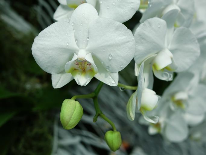 Keywords: orchids flower floral bloom branch closeup green tropical leaf white