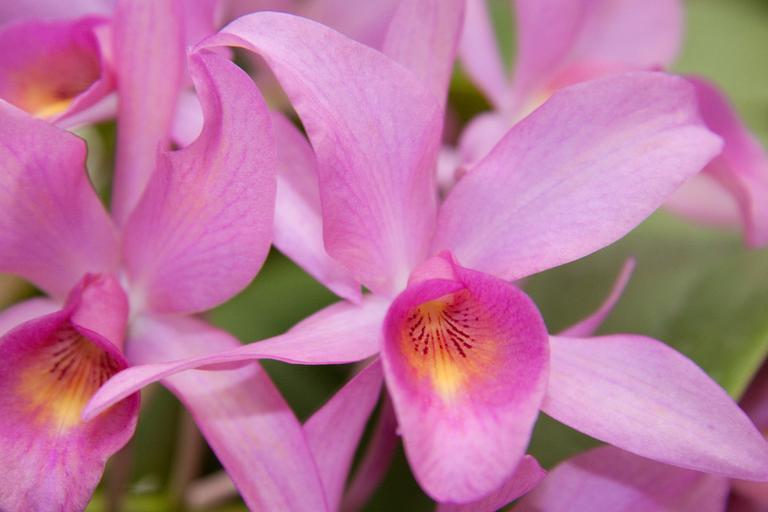 Keywords: orchids pink yellow flower blossom bloom macro flora nature queen of flowers