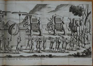 Keywords: Order of the March in Tunquin by Jean-Baptiste Tavernier.jpg en Order of the March of Dignitaries in Tunquin Part B Engraving from Recueil de Plusieurs Relations et Traites by J B Tavernier Chevalier and Baron D'Aubonne 1679 Tavernier's account of people and customs in Asia Persecution of Christians in Japan; Trade negotiations with India ; customs in Tunquin now Tonkin in Vietnam and the East Indies With 14 full page woodcut engravings of Tunquin customs Published by Gervais Clouzier Paris Full original leather binding 178 pages 26cm x 19 5cm 1679 Recueil de Plusieurs Relations et Traites by J B Tavernier Chevalier and Baron D'Aubonne 1679 Jean-Baptiste Tavernier 1605-1689 other versions Custom license marker 2015 03 16 PD-old-100 Uploaded with UploadWizard Recueil de Plusieurs Relations et Traitez Kingdom of Annam Thăng Long |