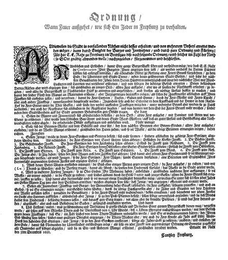 Keywords: Ordnung wann Feuer aufgehet.jpg Ordnung / wann Feuer aufgehet / wie sich Ein Jeder in Freyburg zu verhalten Scan eines Originaldokuments 1692 Canzley Freyburg PD amtliches Werk PD-old-100 Freiburger Bächle De Wikisource book leaflet Firefighting in Freiburg im Breisgau History of firefighting in Germany Location not applicable |