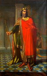 Keywords: Ordoño II de León (Museo del Prado).jpg Retrato imaginario del rey Ordoño II de León c 871-924 Fue hijo del rey Alfonso III de Asturias y de la reina Jimena de Asturias Sometió a su autoridad los territorios del reino leonés y combatió exitosamente contra los musulmanes que aún dominaban la mayor parte de la Península Ibérica Su reinado supuso el tránsito tácito y tranquilo del reino de Asturias al reino de León con la sede regia ya establecida definitivamente en la ciudad de León en cuya catedral fue sepultado 1852 oil on canvas Size cm 140 224 Institution Museo del Prado Depositado en el Museo de Covadonga https //www museodelprado es/coleccion/obra-de-arte/ordoo-ii-rey-de-leon/6d676586-cab1-4131-b497-c0d47237f6f5 accession number P06404 https //content museodelprado es/imagenes/Documentos/imgsem/6d/6d67/6d676586-cab1-4131-b497-c0d47237f6f5/6057ef5b-c2c6-4b91-acd3-9454eef1137a jpg PD-old-100 Ordoño II of León in paintings Paintings by Isidoro Lozano in the Prado Museum Spanish 19th-century paintings in the Museo del Prado Chronological series of Kings of Spain commissioned by Isabella II Paintings in the Museo de Covadonga 1852 paintings in Spain |