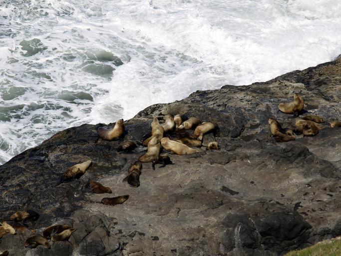 Keywords: oregon coast shoreline pacific seals animals rock water sea lion